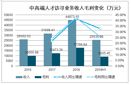 中高端人才訪(fǎng)尋業(yè)務(wù)收入毛利變化(萬(wàn)元)